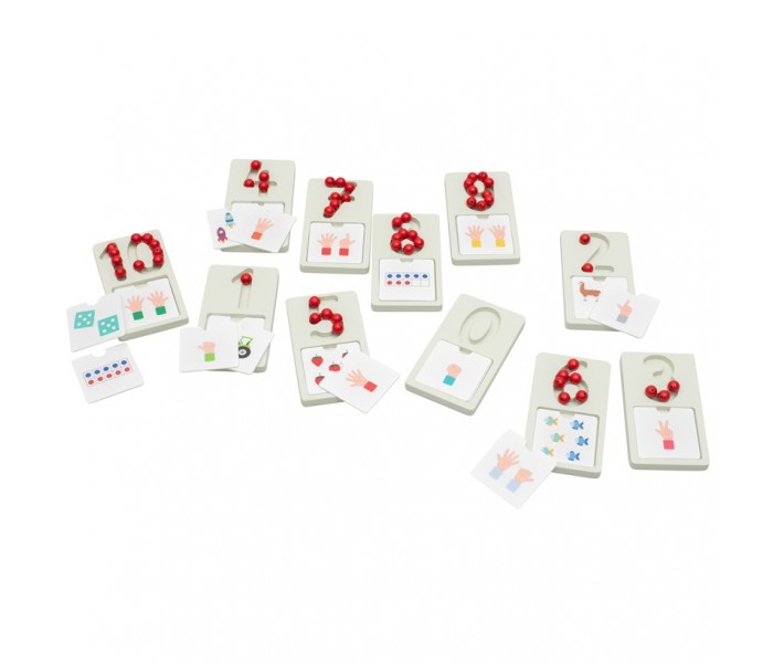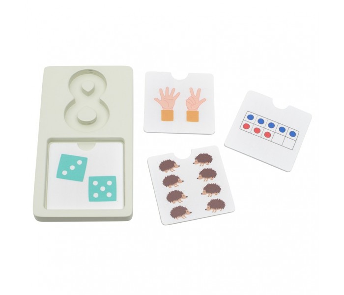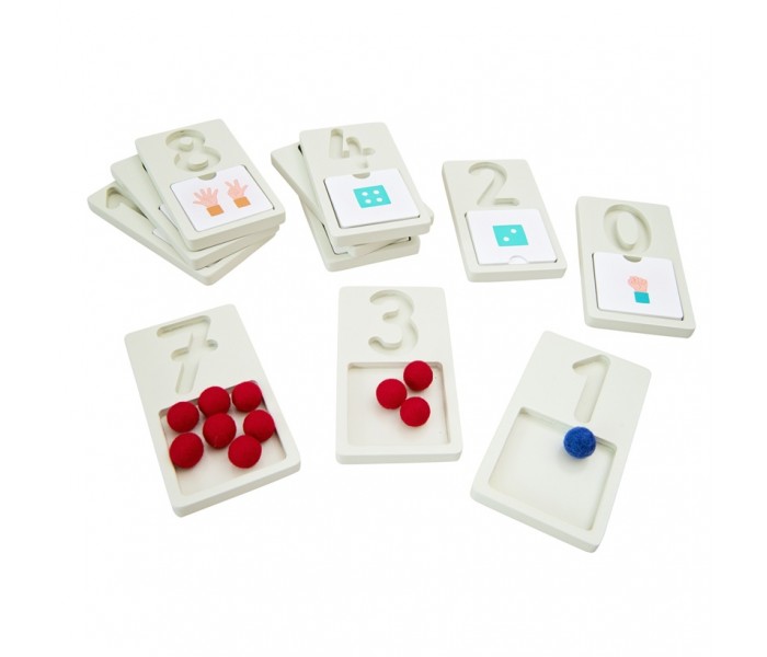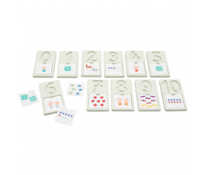 Além dos exercícios numéricos, o kit de exploração inclui 4 azulejos de madeira separados por número. Cada peça mostra representações diferentes do respetivo número. Esta abordagem multifacetada garante que as crianças desenvolvam uma compreensão abrangente de cada número enquanto aprendem através do brincadeira.