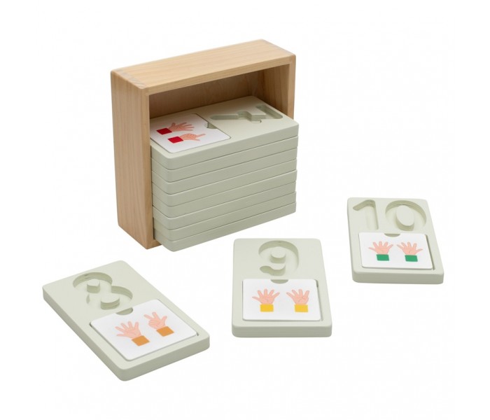 Estes 11 painéis de madeira que representam os números de 0 a 10 proporcionam às crianças uma forma tátil de captar a forma de cada número através do traço. Nas ranhuras das tábuas de madeira, por exemplo, pode ser colocado o número certo de bolas de feltro ou madeira, bem como pepitas de vidro (não incluídas). Esta abordagem sensorial e visual à aprendizagem ajuda a melhorar a memória e a desenvolver uma compreensão mais profunda dos números e das quantidades.