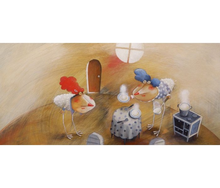 O artista português desdobra uma generosa paleta cromática de cores quentes, na qual brancos e vermelhos marcam a pauta de umas ilustrações de clara orientação narrativa, que complementam a proposta literária mantendo um delicado equilíbrio estrutural na carga informativa fornecida em cada uma das páginas duplas em que se desenrola a história.