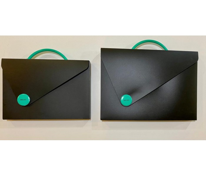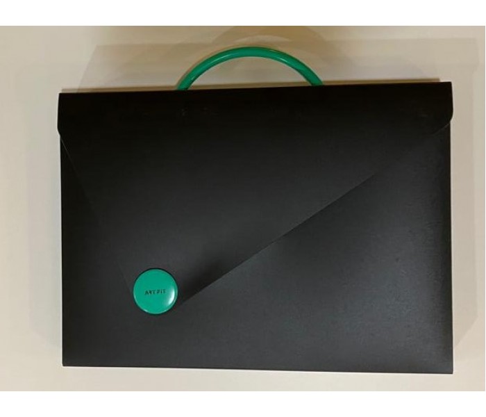 Pasta Porta Documentos / Desenhos A4 Preta com Pega Verde
